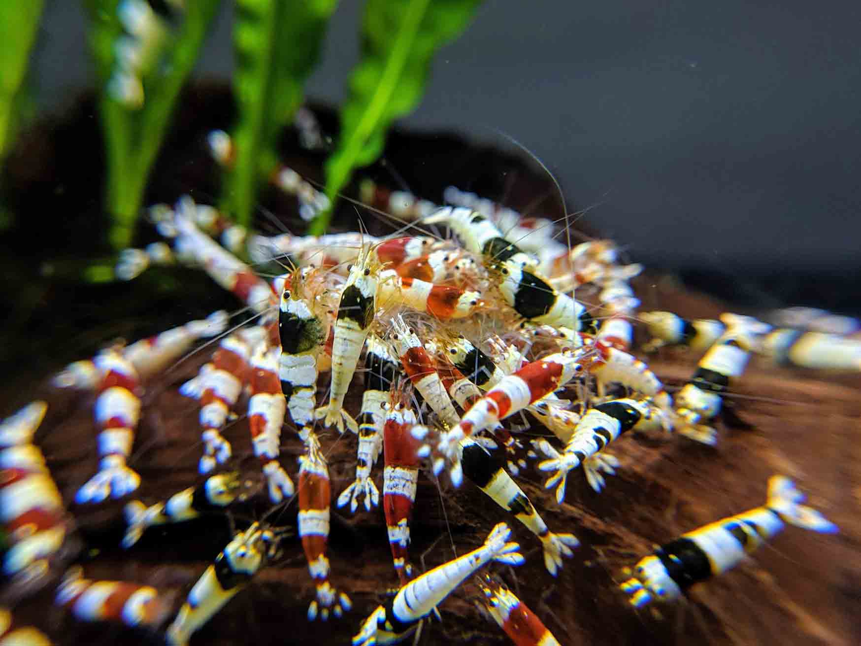 Crystal Red shrimp and Crystal Black Shrimp are stunning in color and pattern and are fairly hardy. The crystal red shrimp is a great option to start with for hobbyists that are transitioning from the Neocaridina genus. Golden Bee Shrimp are stunning in color and pattern, they can be used to improve the white color of a Crystal Red or Crystal Black Shrimp line.