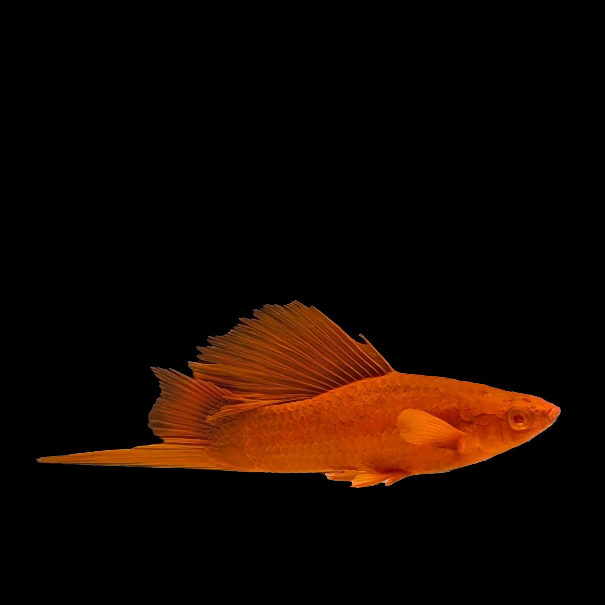 Grade A Blood Red Cauliflower Sabertails (Xiphophorus helleri) are a vibrant addition to any freshwater aquarium. These are a high grade swordtail variation which are selectively bred for the deepest red coloration, ruffled dorsal finned and shorter and thicker "sword"