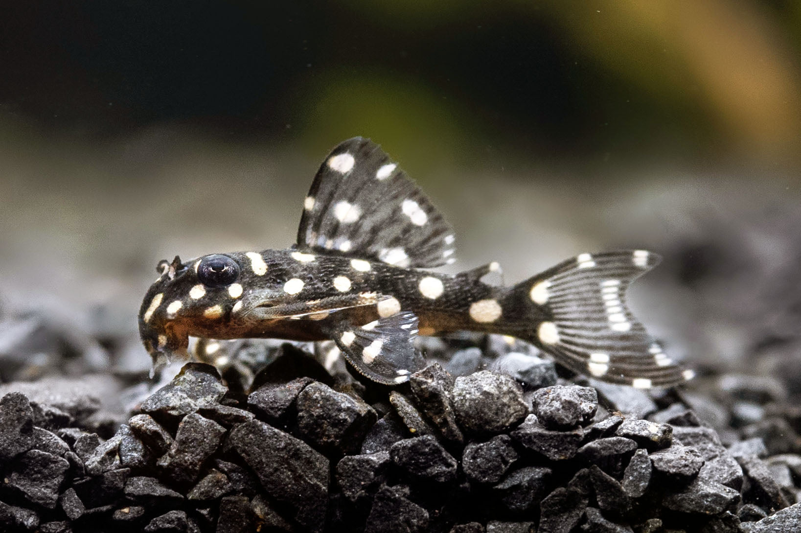 The L201 Snowball Pleco is a captivating freshwater fish prized for its striking appearance and peaceful demeanor. Its black and white spots is a unique pattern that will standout in any aquarium.