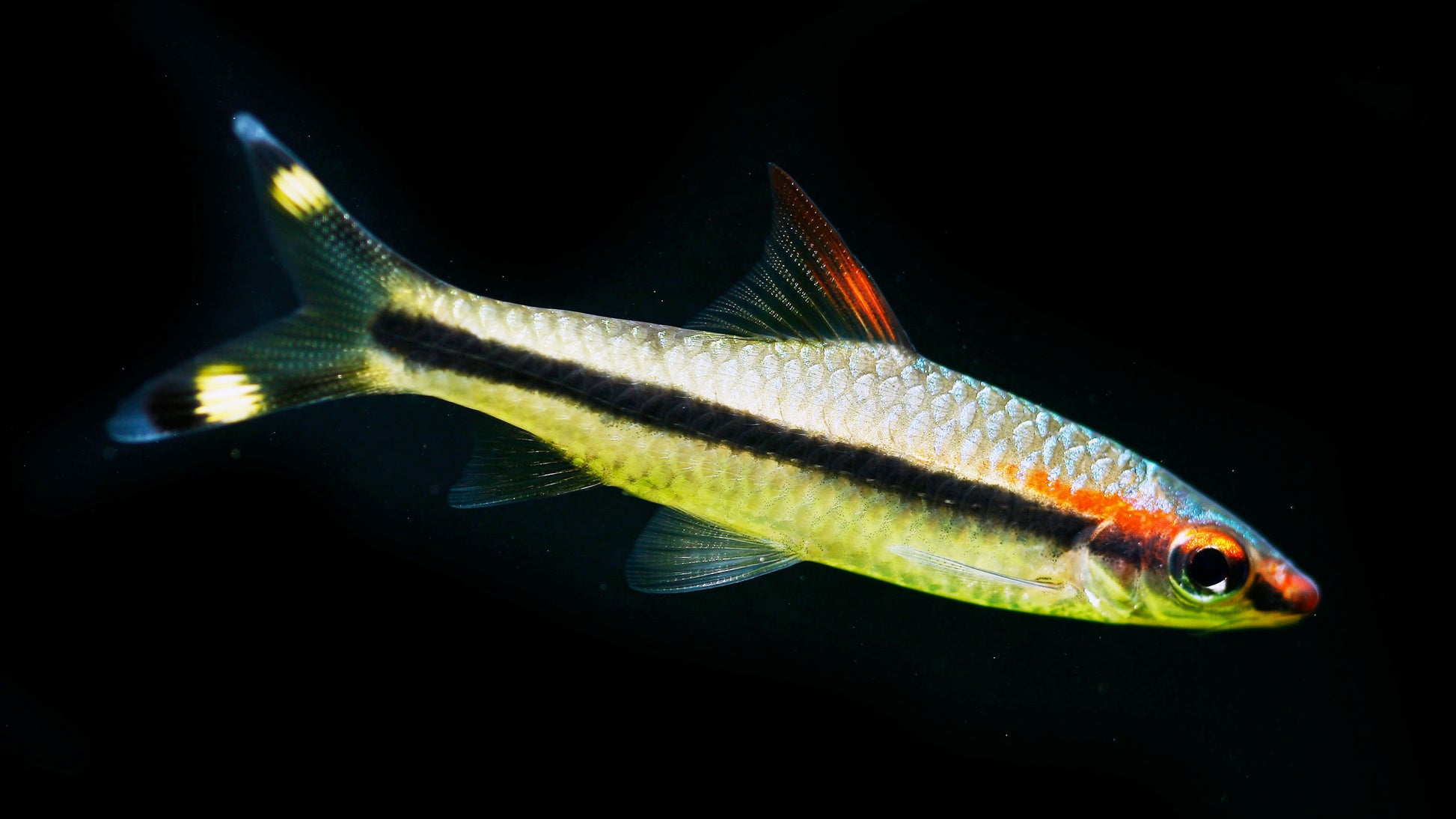 Brighten your aquarium with the stunning Roseline Barb (Puntius Denisonii), also known as the Denison's Barb. Renowned for its striking appearance, this freshwater fish showcases a sleek, elongated body adorned with vibrant red and yellow stripes that run along its sides, complemented by bold, black markings on its fins. These colorful accents make it a standout addition to any aquatic setup.