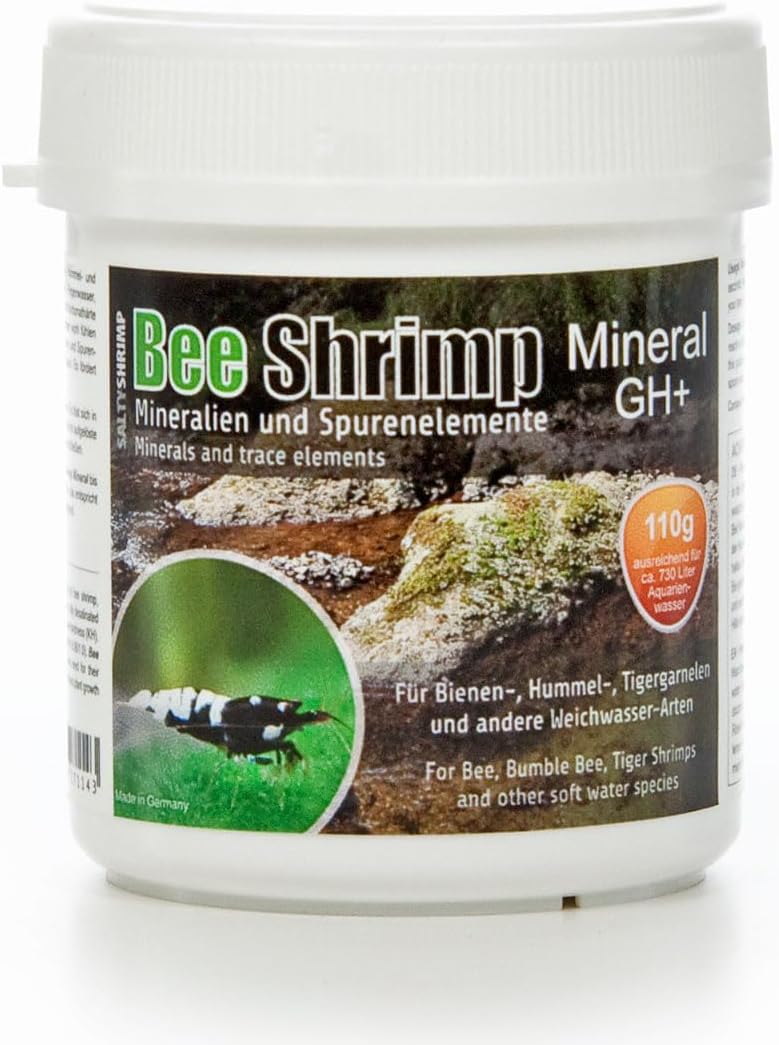 Bee-Shrimp Mineral GH+ has especially been developed for the keeping and breeding of bee shrimp, bumblebee shrimp and tiger shrimp in an aquarium, to mineralise RO water, rainwater, fully desalinated water etc. It raises the total hardness (°dH) without significantly influencing the carbonate hardness (KH). This is especially important for shrimp originating from softwater habitats (ratio of KH/°dH: 0.06/1.0).