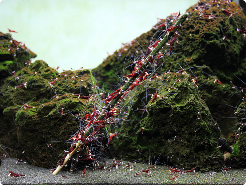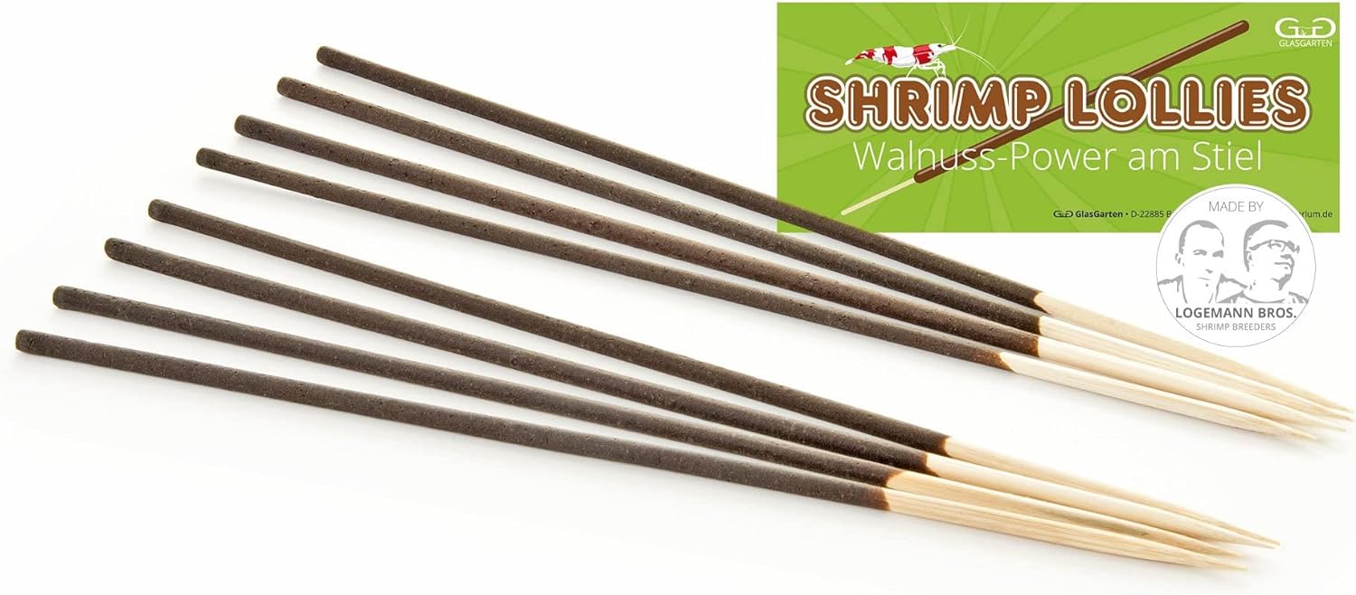 Just stick the Shrimp Lollies into the substrate to start the feeding frenzy ... your shrimp will just love our Shrimp Lollies. It won't take long until the feeding stick is covered in shrimp, and you can watch them munching away on their new favorite food. The food powder stays on the stick very nicely, and your shrimp can eat there for a long time. Our Shrimp Lolliess (feeding sticks) contain lots of important vitamins and minerals, which complement your main shrimp food really well.
